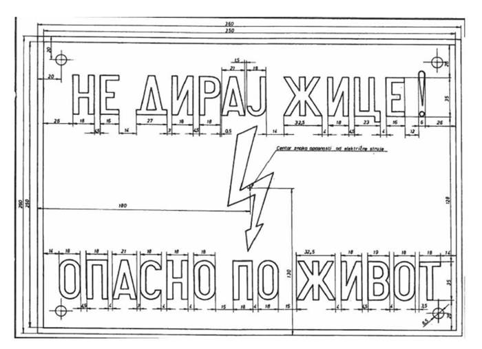 14) na zaštitne kapije koje se nalaze na putu ispred putnog prelaza, zbog mogućeg opasnog uticaja kontaktne mreže iznad koloseka, postavljaju se table za upozorenje učesnika u drumskom saobraćaju na visoki napon, čiji je izgled dat u Prilogu 1 - Table na putnom prelazu sa upozorenjem na visoki napon od 25.000 V u neizolovanoj kontaktnoj mreži iznad elektrificiranog železničkog koloseka, koji je odštampan uz ovaj pravilnik i čini njegov sastavni deo.