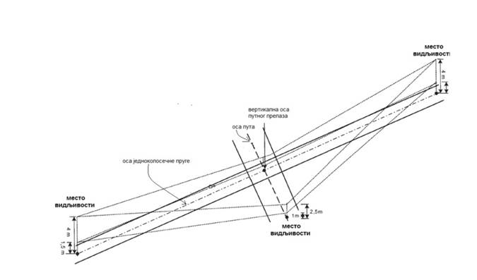 GRAFIČKI PRIKAZ ELEMENATA ZONE POTREBNE PREGLEDNOSTI NA PASIVNOM PUTNOM PRELAZU