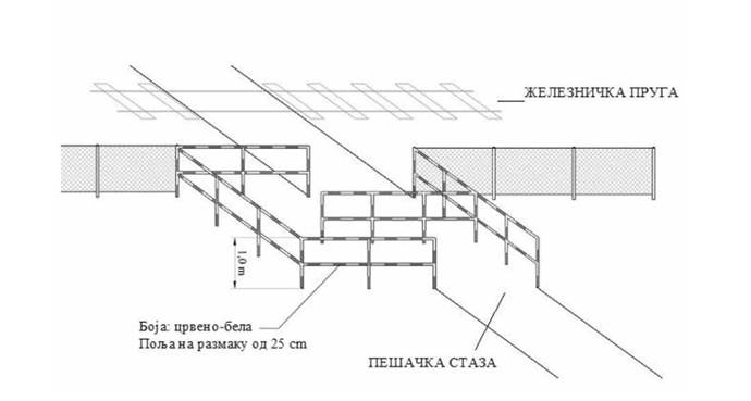 ZAŠTITNA OGRADA I MIMOILAZNICA NA PRELAZU PEŠAČKE ILI BICIKLISTIČKE STAZE PREKO ŽELEZNIČKE PRUGE